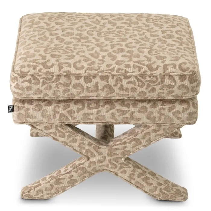 İkonik Eichholtz Cordoba koleksiyonumuza iki yeni kumaş ekliyoruz. Yumuşak dokulu Harley leopar desenli bej kumaşla tamamen döşenmiş bu zarif tabure, sağlam bir çapraz taban üzerinde durmaktadır. Oturma odanızdaki koltuk takımlarının arasına yerleştirerek şıklık katın.