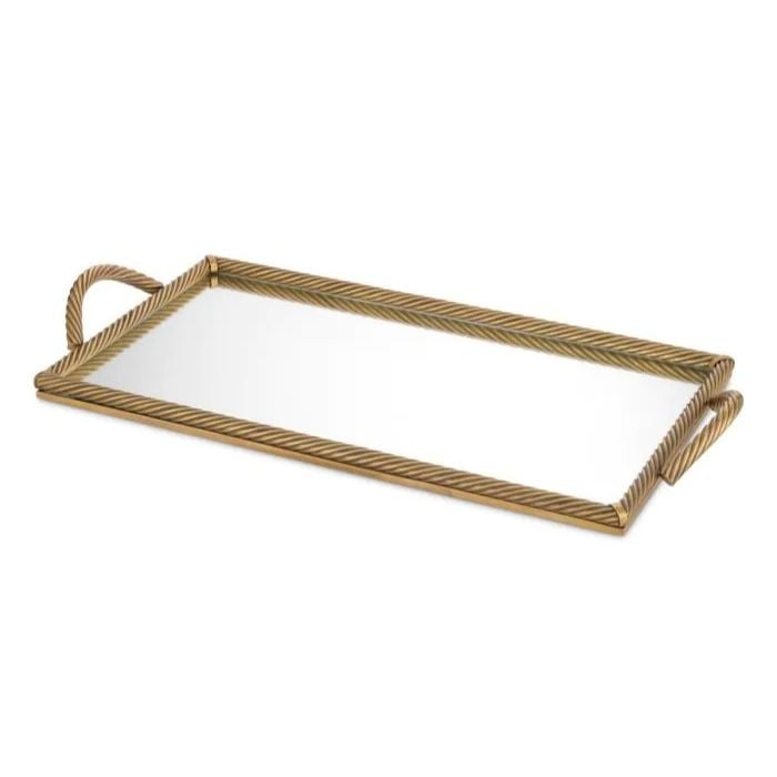 Bu dikdörtgen servis aksesuarı, vintage pirinç kaplaması ve yansıtıcı aynalı cam yüzeyiyle, kusursuz işçilik ve ince detayların mükemmel bir yansımasıdır. Eichholtz Tray Salvi Rectangular L, ister merkezde sergilensin ister servis tepsisi olarak kullanılsın, yalnızca dekoratif bir obje değil — aynı zamanda yaşam alanınıza lüks bir ifade ve büyüleyici bir zarafet kazandıran özel bir tasarımdır.